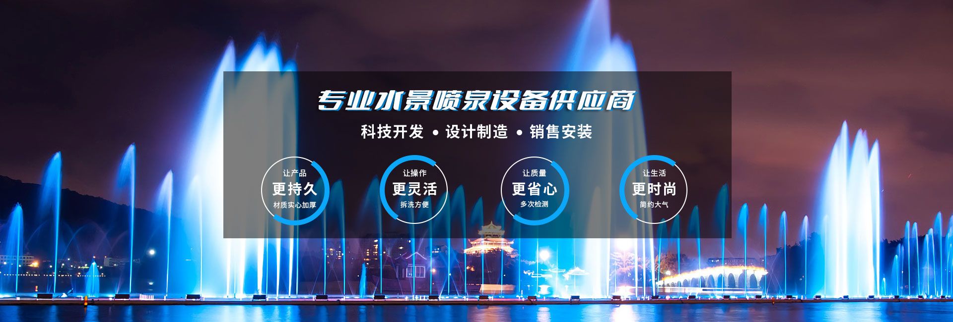 無錫市水舞秀環(huán)境工程有限公司,位于美麗的太湖之濱,著名的陶都--宜興。342省道附近,交通十分便利。本公司立志于弘揚水文化,做好水文章,使噴泉水景集聲、光、水三維一體,營造出更奇、更新、更美的人文景觀。公司在全國承接了大型音樂噴泉、程控噴泉、旱式程控噴泉等大型工程,從工程設(shè)計到制作、安裝、調(diào)試,提供一整套完善的服務(wù)體系只要客戶想到,我們一定能做到、做好。水舞秀噴泉匯聚了噴泉界一批有名望的設(shè)計專家,培養(yǎng)和造就了一大批富有實際經(jīng)驗,誠實守信、吃苦耐勞的高素質(zhì)員工隊伍...
